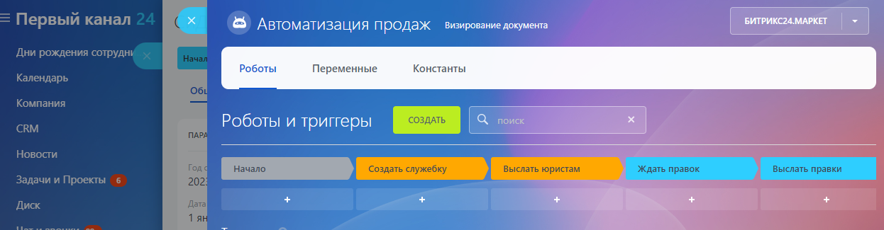 Задача была простой на словах и сложной на деле – отладить процесс согласования документов между отделами за счет автоматизации рутинных действий. Мы хотели, с одной стороны убрать лишнюю рутину, с другой – минимизировать риск человеческих ошибок, таким образом ускорить визирование. Для этого было принято решение создать смарт- и бизнес-процессы. В самом начале мы настроили необходимые поля в карточке Смарт-процесса: