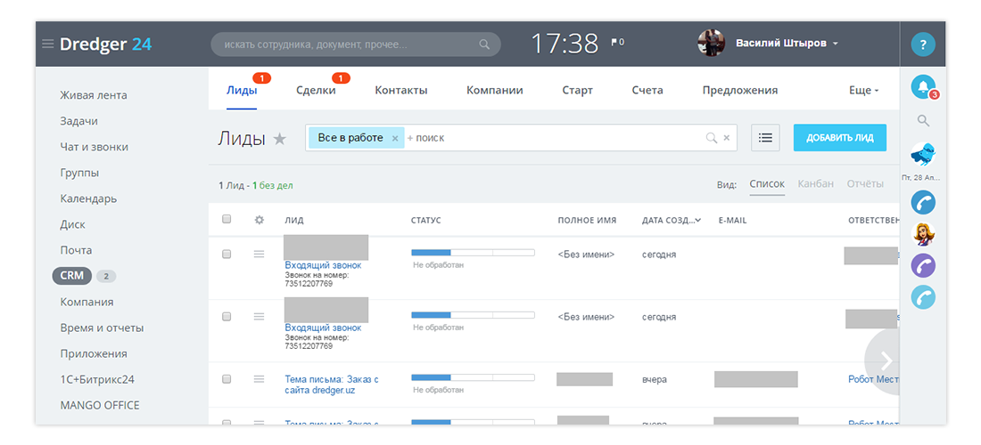 Менеджер их увидит в момент звонка, еще до того как успеет поднять трубку.